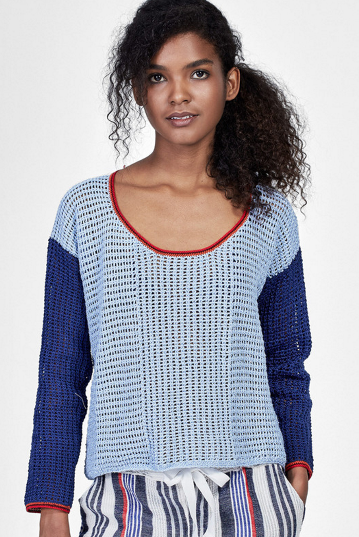100% cotton hand crochet color-blocked sweater