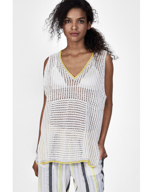 100% cotton hand crocheted tunic fringed top