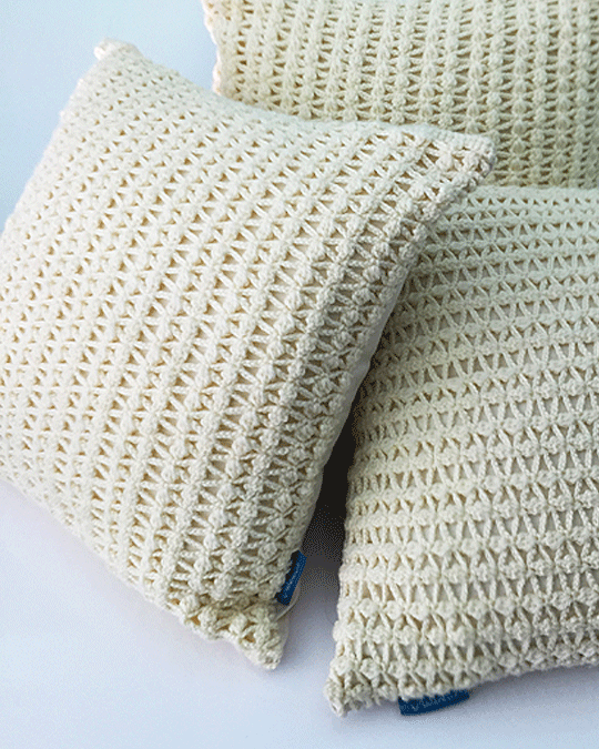Cotton canvas pillow with Merino wool hand crochet